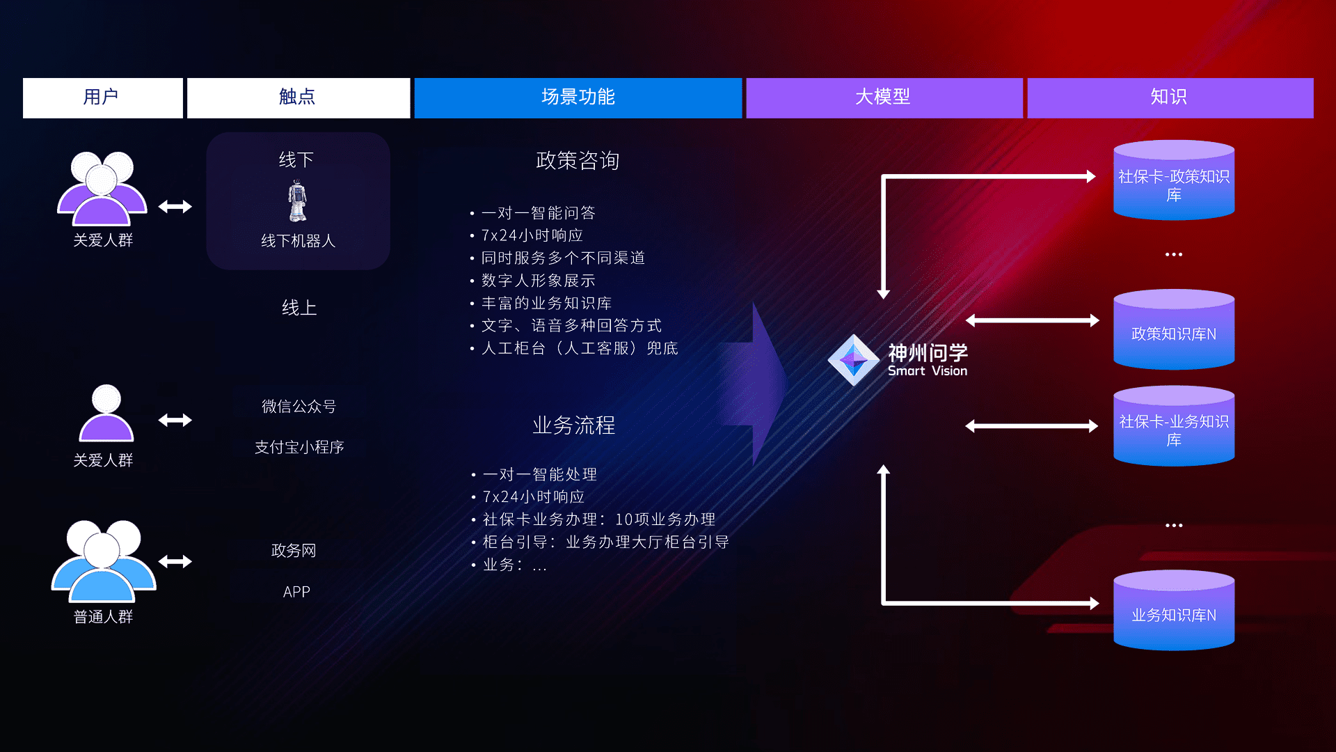 • 线上线下全覆盖:线上提供微信公众号、、、支付宝小程序、、政务网、、app多种渠道,,,与线下机器人形成完整服务体系。。。